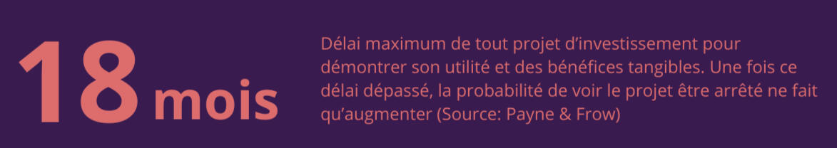 Retour sur investissement trop lent (Rappel: La limite est de 18 mois dans des projets d'envergure!)